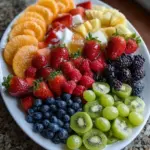 - Fruit mix: follow seasonal produce—peaches, plums, blackberries, or mango make great substitutions. Choose firm but ripe fruit so pieces hold shape on the platter.