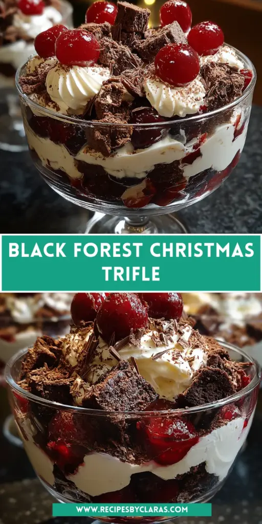 The Black Forest Christmas Trifle is more than just a dessert; it’s a heartwarming way to celebrate the season. As each layer comes together, you’re not only crafting a beautiful treat but also creating memories to share with loved ones. The ease and elegance of this recipe mean you can focus on what truly matters—enjoying time with your family and friends. Plus, there’s nothing quite like indulging in a creamy, chocolaty dessert that makes everyone smile. So, roll up your sleeves, embrace the joy of baking, and let this trifle add a sprinkle of magic to your holiday celebrations!