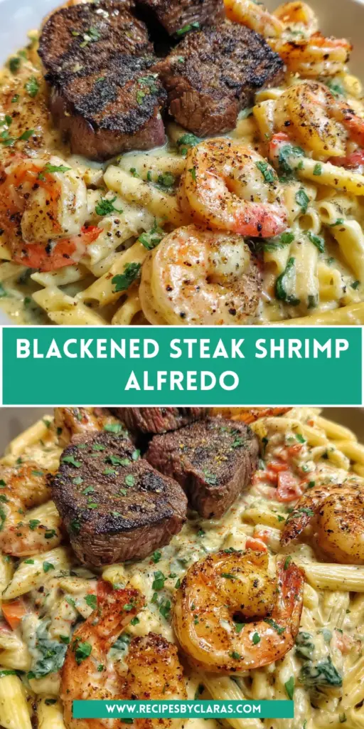 Crafting Blackened Steak Shrimp Alfredo has become one of my favorite culinary experiences. It’s more than just a meal; it’s a delightful opportunity to bring the family together around the table. The harmony of flavors and textures invites everyone to enjoy each bite, sparking conversations and laughter. It’s dishes like this that remind me of the joy cooking brings. Whether you’re celebrating a special occasion or simply enjoying a cozy dinner at home, this recipe guarantees smiles all around. So, roll up your sleeves and dive into this flavorful adventure—you won’t regret it!