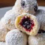 Blueberry-Filled Almond Snowball Cookies glitter like treasures on a festive platter, inviting all with their snowy, powdered sugar crust. Each little bite bursts with flavor, revealing a luscious interior that delights the palate. Imagine a gentle crunch from the almond-infused outer layer, giving way to the sweet, tangy blueberry preserves nestled within—a hidden jewel that sings of summer while enveloping your senses in warmth.