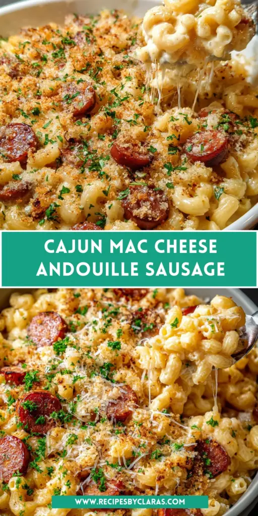 A flavorful and creamy Cajun-inspired mac and cheese dish featuring Andouille sausage.