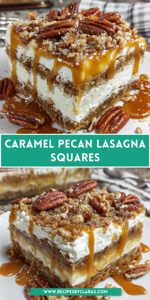 Creating these Caramel Pecan Lasagna Squares has been such a delightful experience, and I hope you feel the same once you try it! Each layer offers a symphony of flavors that dance in harmony—from the buttery shortbread to the creamy fillings and crunchy pecans. It’s a dessert that not only satisfies the sweetest cravings but also brings people together. Whether it’s for a family gathering or a cozy night in, serving these squares will surely spark joy and create lasting memories. You deserve to savor every bite, and I can’t wait for you to share in this delightful culinary adventure!