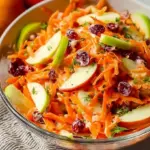 This carrot apple salad earns its place as a beloved dish in any kitchen, standing out for its vibrant flavors and versatility. First and foremost, the combination of sweet and tart fruits with the earthy crunch of carrots creates a refreshing taste that appeals to all ages. Whether it’s a crisp autumn day or a warm summer night, this salad fits perfectly into any occasion—be it a family gathering, a potluck, or a simple weeknight dinner.