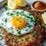 - Serve: Arrange the rösti on serving plates, topping each with a generous dollop of harissa yogurt. Finish with a fried egg on top, a sprinkle of fresh parsley, and serve with lemon wedges on the side.