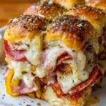 Let’s talk about the magic behind these Cheesy Baked Italian Grinder Sliders. First and foremost, the flavors meld beautifully—each layer plays off the others, from the salty perfection of the deli meats to the creamy provolone that glides over your tongue. The tang of banana peppers adds just the right amount of zing, waking up your taste buds and encouraging happy dance moves in your kitchen! Perfect for casual get-togethers or an elegant buffet, these sliders shine on any occasion.