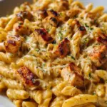You’ll taste the crispy edges of browned chicken, the plush chew of perfectly cooked pasta, and the quiet richness of heavy cream made silk by melted cheese. The first bite is warm and reassuring; the second convinces you this skillet dinner belongs on repeat. If you love one-pan meals that feel indulgent without fussy technique, you’ll adore how this recipe turns simple pantry staples into a crowd-pleasing hug in a bowl. For another cozy weeknight chicken idea, try these cheesy garlic chicken wraps that channel the same creamy, savory spirit in handheld form.
