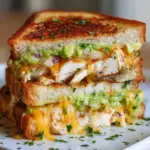 The first bite tells you everything: warm, buttery bread yields to a pillowy, creamy avocado and tender ribbons of chicken. The melted cheese strings pull like a promise, and the contrast between crisp toasted crust and cool, green richness makes your mouth sit up and take notice. Aromas of butter and toasted bread tempt you from the kitchen doorway while the bright, savory notes of seasoned avocado and chicken keep you reaching for another bite.