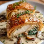 There’s something utterly luxurious about cutting into a golden, flaky envelope and revealing warm, tender chicken swaddled in a herby, earthy mushroom-spinach filling. The puff pastry crackles under your knife, releasing steam that carries the bright tang of Dijon and the silky scent of cream. Each bite balances crisp pastry, juicy chicken, and a creamy, mustard-kissed sauce that lingers with just enough punch to make you reach for another slice.