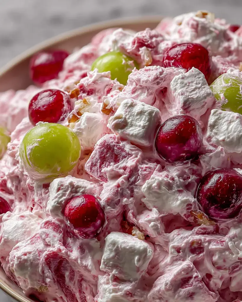 Finally, it’s time to serve your masterpiece! Spoon the Cranberry Fluff Dessert into cute bowls or a big serving dish. You can add a sprinkle of extra nuts on top for garnish if you fancy. This delightful dessert can be enjoyed immediately or kept in the fridge until you’re ready to dig in. Trust me, everyone will be asking for more!