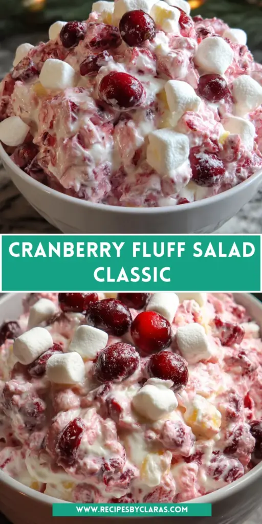 Cranberry Fluff Salad Classic is a delightful and festive treat combining fresh cranberries, cream cheese, and mini marshmallows to create a fluffy, sweet dessert salad, perfect for holiday gatherings.
