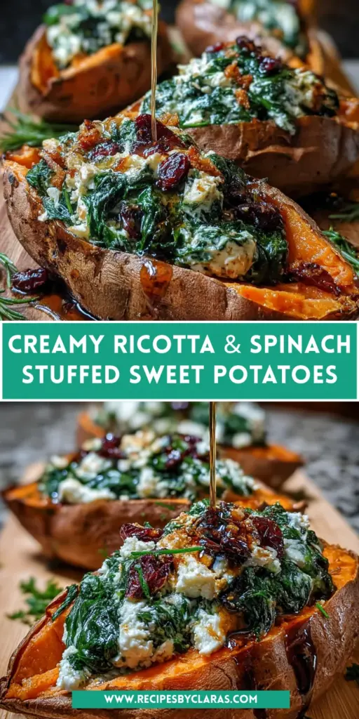 Cooking is more than just preparing food; it’s about creating memories and sharing love around the table. These Creamy Ricotta & Spinach Stuffed Sweet Potatoes embody that spirit. Each bite is a delightful blend of flavors that warms the heart and satisfies the soul. They’re not just a meal; they’re a celebration of wholesome ingredients transforming into comfort food. Whether it’s a busy weeknight or a special gathering, this dish will impress. So grab your apron and dive into this culinary adventure. I promise it will become a cherished favorite in your home!
