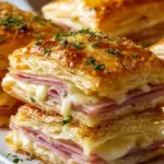 Delightful stacks of flaky puff pastry layered with savory ham and melted cheese, perfect for appetizers or light meals.