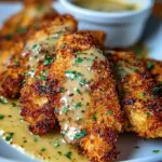 A delicious Crispy Parmesan Chicken recipe with a crunchy exterior and juicy interior, complemented by a bright garlic sauce.