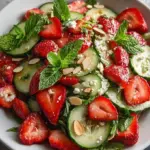 This Cucumber Strawberry Mint Salad proves that simple ingredients, handled with a little care, create something truly memorable — cool, bright, and textured in all the right ways. It dresses up any meal yet feels effortlessly casual, and it rewards small rituals like toasting almonds or zesting lemon. If you want to see a different take on the same flavors, check out Cucumber Strawberry Salad with Mint – Laura M. Ali for more inspiration. Give this salad a try the next time strawberries are at their peak — I promise it’ll become a go-to.