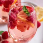 A refreshing and vibrant sangria featuring sparkling rosé, fresh strawberries, and raspberries, perfect for any celebration.