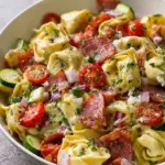 This is not merely a salad; it’s a joyful gathering of flavors and textures, each ingredient handpicked to bring out the best in the others. The richness of the cheese tortellini enveloped in a light, zesty dressing warms your heart, while the refreshing crunch of vegetables makes every bite feel like a refreshing breeze on a sunny day. Perfect as a side dish or a stand-alone meal, this tortellini salad isn’t just more food on a plate; it’s a symphony of tastes that invites everyone to linger just a bit longer to share stories and laughter.
