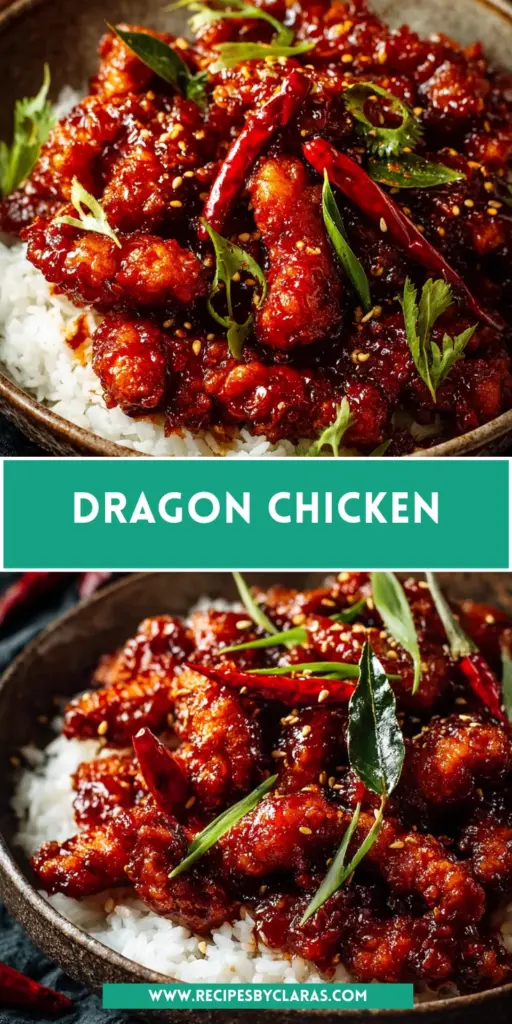 Dragon Chicken is a flavorful and spicy dish featuring crispy chicken tossed in a tangy sauce, perfect for serving with rice or noodles.
