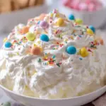 Each bite transports you to a world where clouds of sweetness mingle with the rich undertones of cream cheese and vanilla, creating an experience that feels both indulgent and nostalgic. The texture dances on your palate, almost ethereal in its lightness yet robust enough to satisfy any sweet craving. As colorful sprinkles tumble through the fluff, they evoke images of Easter eggs and springtime celebrations, making each scoop a joyous delight for both kids and adults alike.