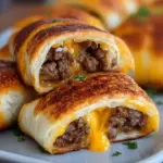 Delicious rollups filled with savory beef, gooey cheese, and aromatic garlic, wrapped in a crispy crescent shell.