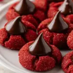 Hershey’s Red Velvet Blossoms are bright, soft, and easy to make. They mix a classic red velvet flavor with a chocolate kiss on top. These cookies work well for parties, holidays, or a quick sweet treat. They bake fast and look pretty with red sanding sugar.