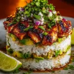 This Honey Lime Chicken & Avocado Rice Stack is bright, simple, and full of fresh taste. The chicken is marinated in a honey-lime sauce and grilled quickly, making it perfect for a weeknight meal.