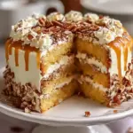 When you serve this cake, you don’t just offer dessert; you present a true culinary love letter. The aesthetic layers, adorned with a sprinkle of pecans or walnuts for texture, tantalize the eyes even before the first bite. The aroma wafting from the oven transports you to the carefree days of summer, highlighting the affectionate embrace of home-cooked love. This cake easily serves as the centerpiece at birthdays, holiday feasts, or a simple get-together with friends, turning every moment into a cherished memory.