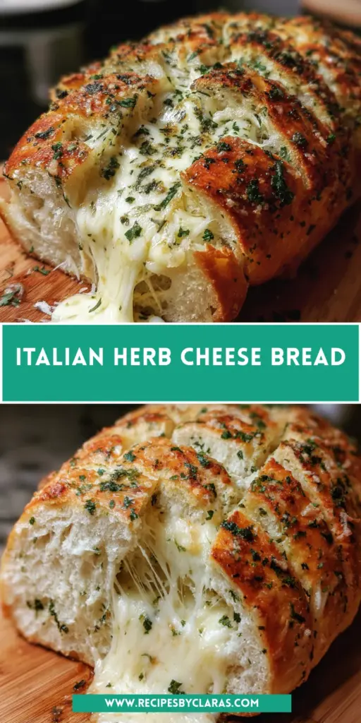 In the end, making Italian Herb Cheese Bread is more than just baking—it’s about creating moments to savor. With its cheesy filling and aromatic herbs, this recipe brings joy to your kitchen and warmth to your table. Whether enjoyed fresh out of the oven or served at a family gathering, each slice tells a story of comfort and togetherness. So grab your apron, unleash your inner chef, and let the delightful embrace of this bread remind you that life’s simplest pleasures often come from our own homes. Happy baking!