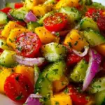 It feels light yet satisfyingly substantial — cooling. The textures play off each other beautifully: mango’s silkiness, cucumber’s refreshing crunch, and the tender snap of bell pepper. You can imagine the aroma rising from the bowl as you toss: citrus, sweet fruit, and herbaceous green—an invitation to dig in. If you love salsa with a salad’s soul, this dish will become your go-to when mangoes ripen and summer lingers.