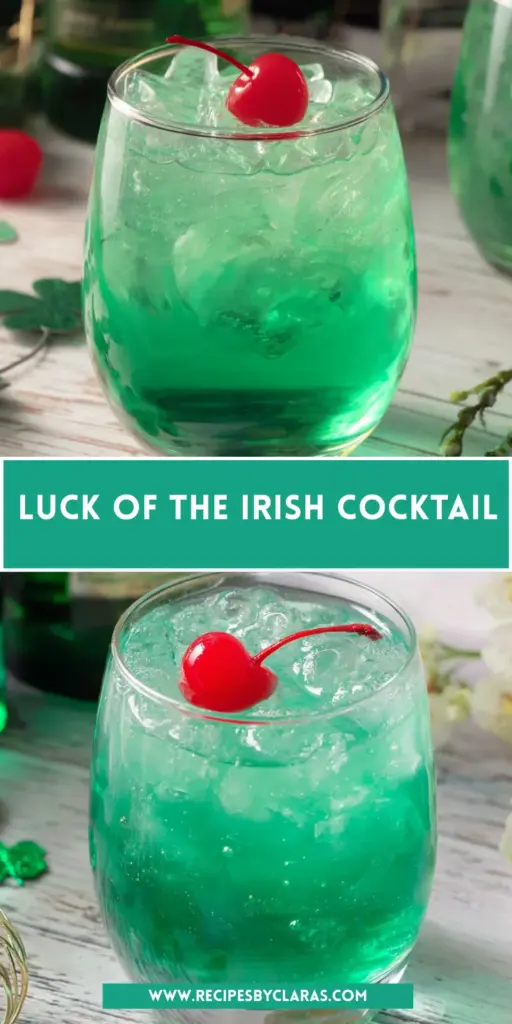 Looking for a drink that’s bold, bright, and brings major St. Patrick’s Day vibes? Say hello to the Luck of the Irish Cocktail—a vibrant green mix of Irish whiskey, tropical pineapple juice, blue curaçao, and peach schnapps, topped off with fizzy Sprite and garnished with a cherry.