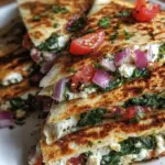 There’s something incredibly comforting about a warm, toasty quesadilla, especially when it’s packed with vibrant Mediterranean flavors. Imagine the crispness of a perfectly golden tortilla that crumbles lightly as you take your first bite. The union of creamy feta and mozzarella creates a delightful richness that combines flawlessly with the fresh, earthy notes of spinach and the slight sweetness of ripe tomatoes. Each mouthful bursts with a harmonious blend of tastes that transport you to a sun-soaked terrace overlooking the azure sea. Every component plays a role, offering both texture and taste, making these Mediterranean quesadillas hard to resist.