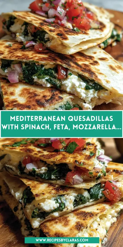 Making Mediterranean Quesadillas with Spinach, Feta, Mozzarella, and Red Onion is more than just whipping up dinner; it’s an experience that brings joy to your kitchen. The vibrant colors and enticing aromas transform cooking into a culinary adventure. With every crispy bite, you’ll find comfort in the delicious flavors that remind you of sunny Mediterranean days. It’s a simple, quick recipe that not only fills hungry bellies but also creates lasting memories around the dinner table. So, gather your loved ones and indulge in this delightful treat that’s sure to spark smiles all around!