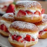 When sweetness dances on your palate, and the aroma of fresh strawberries fills the air, you know you’re about to embark on a delightful culinary adventure. Picture this: miniature donuts, golden and warm, adorned with a luscious filling of whipped cream and crowned with vibrant, juicy strawberries. Each bite reveals a texture that’s light and airy, yet they carry a rich creaminess that lingers just long enough to entice you into taking another. Mini Strawberry Cream Donuts serve not only as playful treats but as an invitation to indulge in a moment of bliss, whether as a special breakfast, an afternoon snack, or a charming dessert at a gathering.