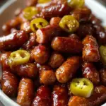 These little sausages travel from humble party snack to absolute showstopper with almost no fuss. They bubble and brown in the oven, releasing a mouthwatering aroma that drifts through the house: warm butter, roasted meat, sweet caramel, and that cheeky, pickled zing. They arrive at the table glossy and warm, perfect for skewering with a toothpick or tucking into soft slider buns for a messy, joyful bite.