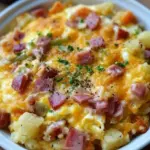 A hearty and comforting breakfast casserole made in a slow cooker, combining hash browns, eggs, cheese, and your choice of ham or bacon, perfect for family gatherings or busy mornings.