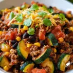 Imagine biting into a forkful of seasoned ground beef, perfectly browned and nestled among tender zucchini, hearty black beans, and sweet corn kernels. Each mouthful brims with flavor, like a fiesta of spices that tickle your taste buds while bringing a smile to your face. The zucchini, subtle yet pleasantly crunchy, balances the richness of the meat, creating a medley that’s wholesome and utterly delicious. Top it all with fresh cilantro and a sprinkle of cheese, and suddenly, your simple dinner transforms into a fiesta worth celebrating!