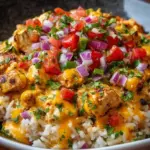 This One-Pot Cheesy Southwest Chicken & Rice is a simple, creamy meal ready in one pan. It mixes chicken, rice, beans, corn, salsa, and lots of cheese for an easy dinner. If you like quick chicken ideas, you might also enjoy the cheesy garlic chicken wraps recipe for another simple meal.