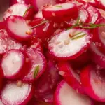 Crisp and tangy pickled radishes that elevate any dish with their vibrant flavor and crunch.