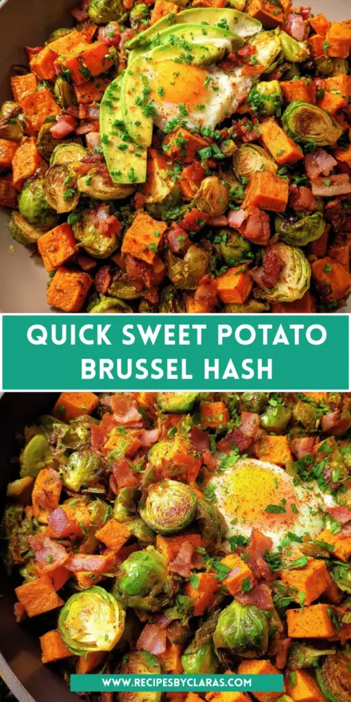 A delicious and easy recipe for Quick Sweet Potato Brussel Hash, perfect for any meal.