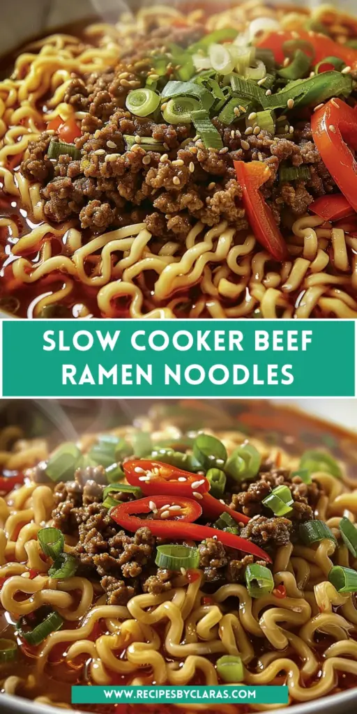 A delicious and easy recipe for Slow Cooker Beef Ramen Noodles, featuring tender beef and fresh vegetables cooked to perfection.