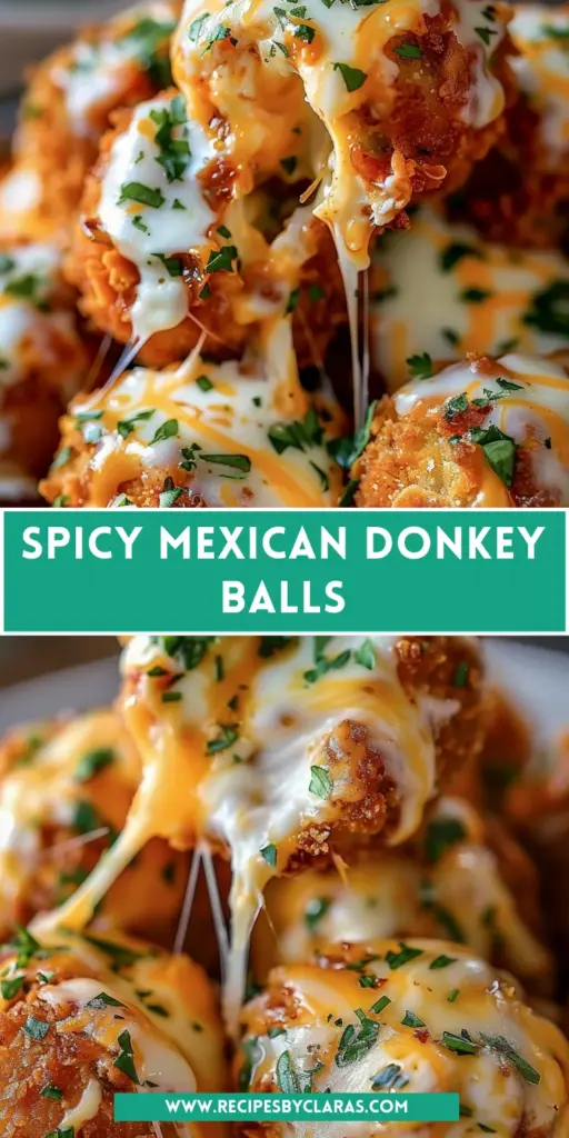 A delicious and flavorful snack, Spicy Mexican Donkey Balls combine a cheesy filling with a crispy coating, perfect for any occasion.