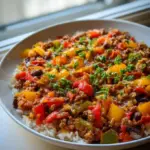 As you prepare this dish, the colorful toppings and zesty seasonings ignite a hunger that goes beyond the physical. The blend of ground beef and fire-roasted tomatoes is a delightful reminder of childhood meals shared around the family table. The combination of tender vegetables, fluffy rice, and tantalizing spices awakens nostalgic memories, wrapping you in a delicious nostalgia that beckons you to come back for more. With just one pan, you create a feast that’s as savory as it is satisfying, making clean-up a breeze and your heart full.