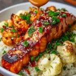 There’s a magic that occurs when the sweet notes of honey meet the fiery kick of sriracha, and it unfolds beautifully in a dish that warms the soul and excites the palate. Imagine a luscious salmon fillet, shimmering with a sticky glaze that glistens in the light, fresh out of the oven. The first bite sends your senses soaring—sweet yet spicy, succulent yet flaky. Add to this a side of tender roasted cauliflower, subtly charred and seasoned to perfection, nestled on a bed of fluffy rice. This isn’t just a meal; it’s an experience that beckons you to savor every moment.