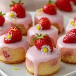 I love how they balance tart and sweet without ever tasting cloying. The cake is soft and buttery, dotted with strawberry flecks that melt into syrupy jewels. Serve them at backyard brunches, bridal showers, or whenever you want a cheerful little dessert that looks like spring and tastes like sunshine. If you like the idea of bite-sized delights, you might also enjoy the silky contrasts in Strawberry Velvet Cheesecake Truffle Bites, which play similarly with fruit and creamy textures.
