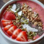 - Add Toppings: Top each bowl with fresh strawberry slices, a generous sprinkle of gluten-free granola, shredded coconut, a scatter of pumpkin seeds or sunflower seeds, and an extra pinch of chia seeds for texture.