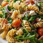 Imagine sinking your teeth into the tender pasta, kissed by a light, zesty dressing that dances across your palate. The sweetness of the ripe tomatoes contrasts beautifully with the peppery bite of arugula, while the cucumber adds a refreshing crunch, making each mouthful feel like a mini celebration of summer. Elevate your experience with the creamy tang of feta cheese, if desired, lending a luxurious touch to this harmonious blend that feels both indulgent and wholesome. Whether served at a family barbecue, a potluck, or simply as a satisfying meal for one on a warm day, this pasta salad elevates any occasion while putting a spotlight on the beauty of seasonal ingredients.