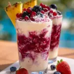 Blend the Fusion: In your high-speed blender, introduce the frozen mixed berries, white rum, coconut cream, and pineapple juice. Blend until the mixture transforms into a silky, smooth elixir. Don’t shy away from stopping the blender and scraping down the sides if necessary to ensure everything combines perfectly.