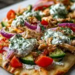 The interplay of flavors and textures in a Tzatziki Chicken Veggie Naan Pizza creates a culinary experience that dances on the palate. Imagine tearing into a perfectly crisp naan base adorned with a generous layer of creamy tzatziki sauce, the unmistakable freshness of cucumber mixed harmoniously with a hint of garlic and tangy yogurt. Each bite reveals tender, shredded chicken, its savory profile enhanced by crunchy slices of vibrant bell peppers and sweet red onions. As you chew, the rich, crumbly feta cheese brings a delightful salinity that perfectly complements the melty goodness layered throughout.