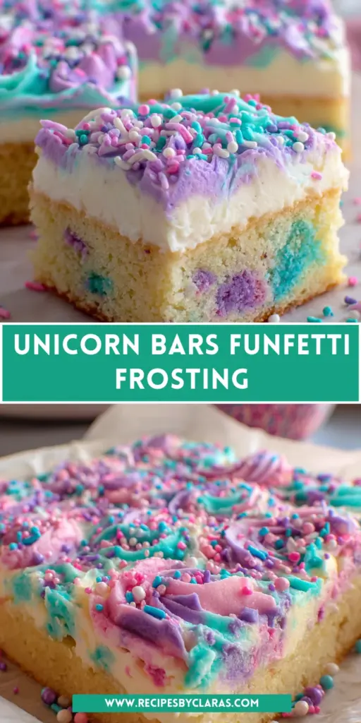 A colorful and delightful recipe for Unicorn Bars topped with Funfetti Frosting, perfect for parties or a fun treat.