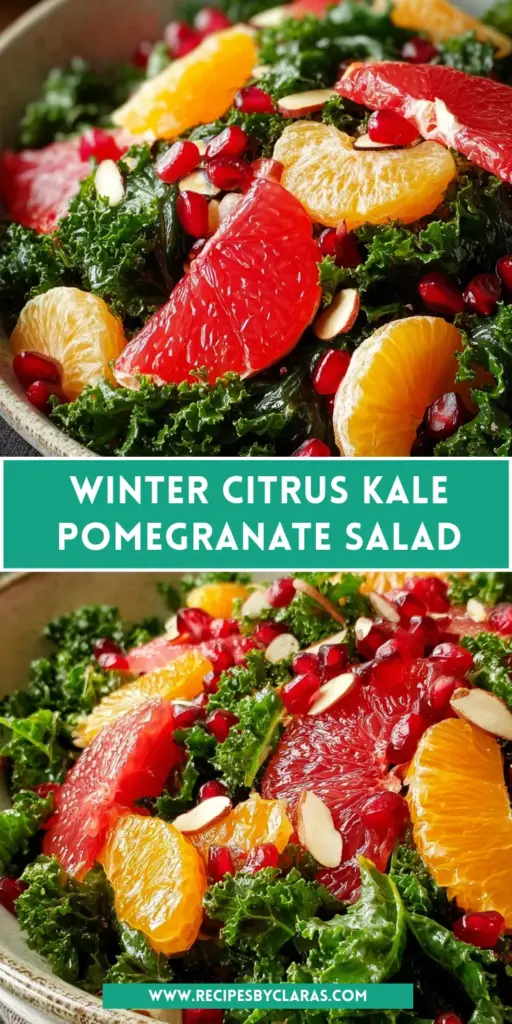 Creating a Winter Citrus Kale Pomegranate Salad isn’t just about food; it’s about nourishing our loved ones with something vibrant and wholesome. Each bite crunches with flavors that brighten dreary winter days, evoking joy with its colorful presentation. I genuinely enjoy sharing this recipe with friends and family, knowing it brings smiles to their faces. Whether it’s for a casual weeknight dinner or a festive gathering, this salad is sure to impress. So grab those ingredients, channel your inner chef, and relish the joyful experience of crafting this delightful dish! Your taste buds will thank you!